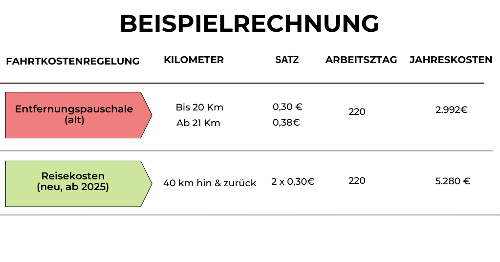Ergebnis: Statt nur 2.992 € können Sie künftig 5.280 € an Fahrtkosten steuerlich geltend machen.